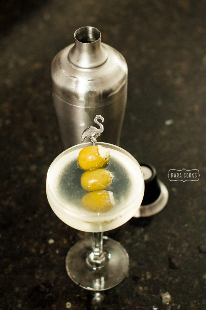Since then, of course, we’ve had to move the bartending home, and the few years have given me the opportunity to perfect my own dirty martini. Being a born Texan, I am, of course, a fan of Tito’s vodka but feel free to use your vodka of choice.