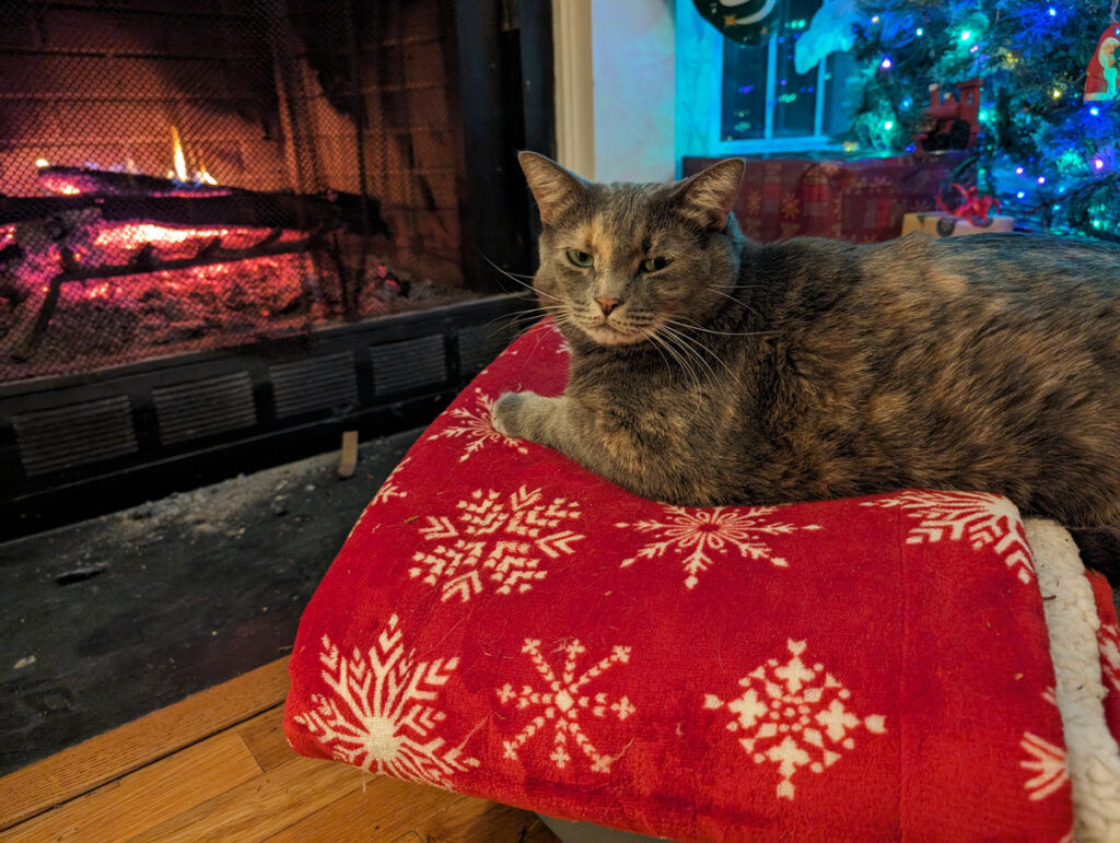 It’s December 30th, and I’m sitting on the sofa writing this post that I’ll share tomorrow for New Year’s Eve. The tree is still lit, though looking a little bare without presents underneath. There’s a fire going because Georgia has finally given us some actual winter weather. Remy-dog is snoring at my side, Callie-cat is draped across my lap (making typing with one arm awkwardly stretched over a snoozing torbie quite the challenge), and Finn-cat is probably outside under the front rose bush in his favorite sunbeam.